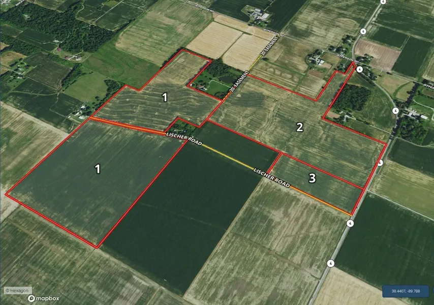 222 acres cropland located 4+- miles South of Mascoutah IL on the South and West side of IL Route 4, just South of the S curve. Possession is available for the 2022 crop year. Offered as 3 tracts and combinations. Online only.