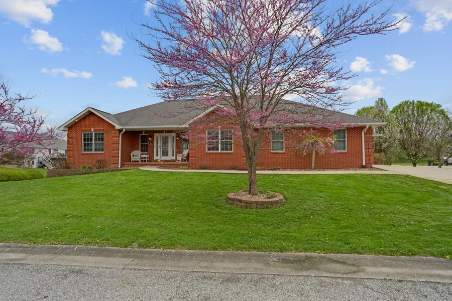 Picture yourself relaxing with lake views at this lovely Freeburg home! Complete with a full brick exterior, lake access with dock, sprawling lush lawn, 3 car garage, patio, and large covered back deck, this home is certainly impressive! Walk into the entry and find yourself greeted by vaulted ceiling, an open spindle staircase leading to the lower level, ample windows, and glass pane doors leading to the deck. Adjacent is the formal dining room, and beyond, the eat-in kitchen, featuring bay windows, breakfast bar, quartz counters, pantry, and crown molding adorning the 42 in cabinetry. Continue through the main level to find the sprawling master suite with hardwood flooring, two additional bedrooms (also with hardwood), an additional bath, and a convenient main floor laundry, complete with cabinetry, mop sink, and counter. In the lower level, find plenty of windows, walk-out access to t...
