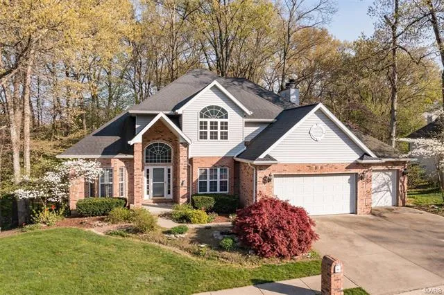 This home has a welcoming presence for family and friends. As you enter into the 2 story foyer with Brazilian Redwood flooring you will appreciate the custom details this one owner home has to offer. The formal living and dining rooms are spacious with 10 foot ceilings and allow for entertaining in uncrowded comfort. The gourmet kitchen has rich cabinetry, granite countertops, backsplash, walk-in pantry and all stainless appliances are included. The family room adjoins the kitchen/breakfast areas and boasts the full brick custom gas fireplace. The primary bedroom with in-suite bath and large walk-in closet is enhanced by the double vanity, separate tub & shower. Three additional bedrooms and guest bath complete the upper level. The lower level rec room with a wet bar, and wood burning fireplace is large enough for a pool table and entertainment center. The wooded back yard provides a pic...