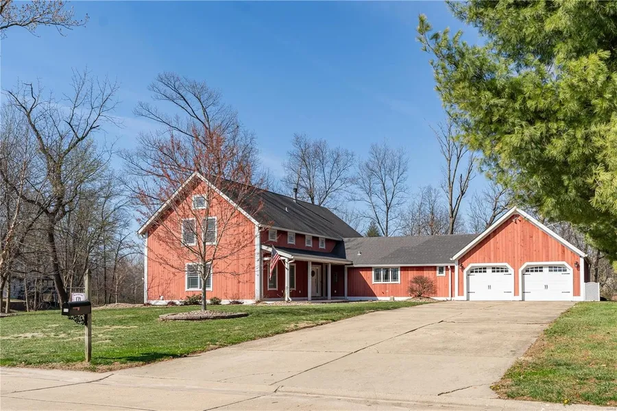Bliss! Get lost in this superb Yankee Barn Douglas farm house with delightful exposed beams. The floor to ceiling picture window washes natural light over you and boasts an immensely attractive view of Rosewood Lake. Beautiful 3 story custom pass through stone fireplace wraps multiple lofts on the upper levels. Abundant recessed lighting and sky windows that open. Amish cabinets of Knotty Alder, Granite & a farmhouse sink fill the kitchen space, among other cool hidden features. All the entertainment options are all YOURS: double ovens, 5 burner gas cooktop, bar stools, walk-in pantry. The Atrium windows, tile flooring and french doors in the master suite are an oasis all by itself! Main level 4th bedroom could host in-laws. Upper bedrooms are good size with one offering its own bath. Massive basement with 2 egress. Utilities include dual water heaters w re-circulation, zoned HVAC, PLUS ...
