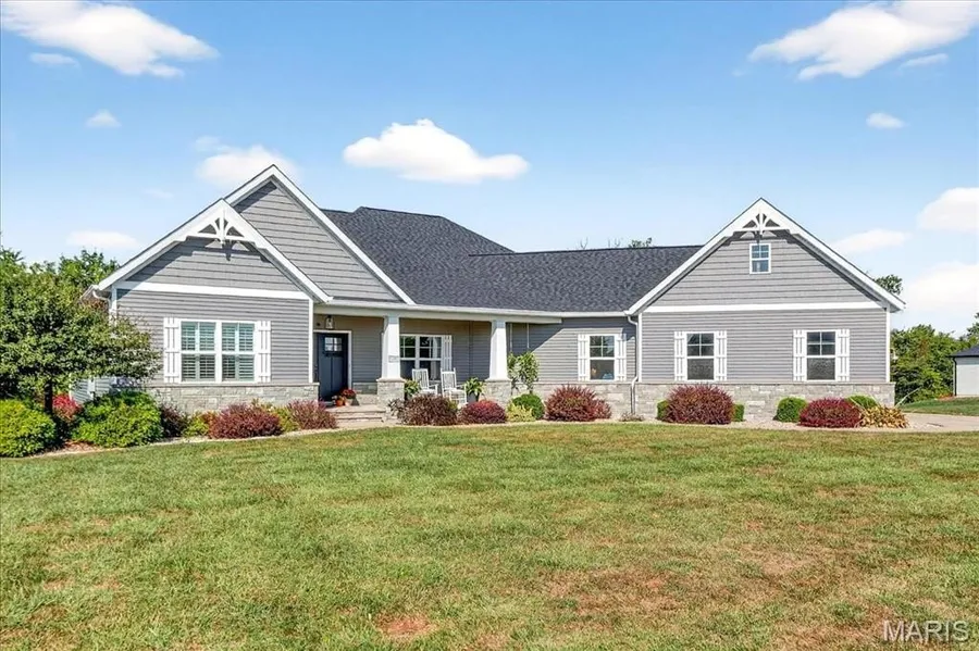 LOOKING FOR THE PERFECT BLEND OF SPACE, COMFORT AND STYLE? This custom, 4-bedroom, 3.5-bath ranch home, offers nearly 4,000 sq ft of living space on a private 1-acre lot. Designed for both everyday living and entertaining, the open-concept main floor features a gourmet kitchen, spacious living and dining areas, and a luxurious primary suite retreat. Two additional bedrooms share a convenient Jack and Jill bath—ideal for family or guests—while a dedicated office with a walk-in closet offers flexibility to convert into a 5th bedroom if needed. Enjoy peace of mind with a brand-new roof (2025) and relax on the low-maintenance composite deck with stairs leading to a tree lined backyard—perfect for outdoor gatherings or quiet evenings. The finished walkout basement includes a large family room, a full bedroom and bathroom, and bonus space ready for your home theater, gym, or guest suite. An oversized, side-load, 3-car garage adds plenty of room for vehicles or storage. Conveniently located close to town while offering the privacy you don’t find in many neighborhoods! O’Fallon schools and close to Scott AFB!
