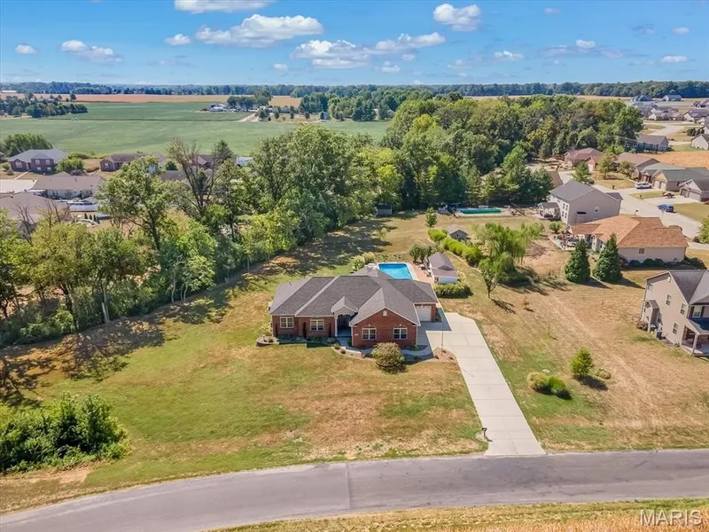 Schedule your private showing today and don’t let this Smithton ranch slip away! This incredible property sits on a full acre with a wooded backdrop and is truly an entertainer’s dream. You’ll fall in love with the backyard oasis featuring a beautiful saltwater in-ground pool, complete with a pool house that offers a kitchenette and half bath, a cabana area for serving food and drinks, and a covered patio perfect for summer gatherings. The home also boasts a 3-car side-entry garage, extensive landscaping, partial fencing, and plenty of open parking—all with no active HOA fees. Inside, you’ll find 9’ ceilings on the main level, wood flooring throughout the main living areas, and a stunning kitchen with an island, granite countertops, stainless steel appliances (including a double oven and pot filler), and a walk-in pantry. The primary suite offers a luxurious bathroom with double-height v...