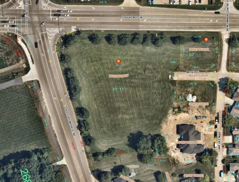 HIGHLY VISIBLE 3.25+/- ACRES COMMERCIAL LOCATION AT THE CORNER OF OLD COLLINSVILLE RD & FRANK SCOTT PARKWAY. HIGH TRAFFIC COUNT. ALL UTILITIES AND SEWER ARE AVAILBLE AT ADJOINING PROPERTY. TAXES NOT YET FULLY ASSESSED. INCLUDES 2 PARCELS 08-02.0-102-007 & 002 AGENT INTEREST. Location: Corner Location, High Traffic