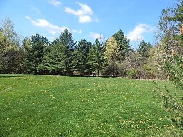 Take the drive through the center of the property and park at the beginning of the woods and you'll immediately see the park like setting at the entrance to the woods. The acre or so is cleared, grass planted and mowed, and a firepit. Obviously a great place to have a family get together on a warm summer day.