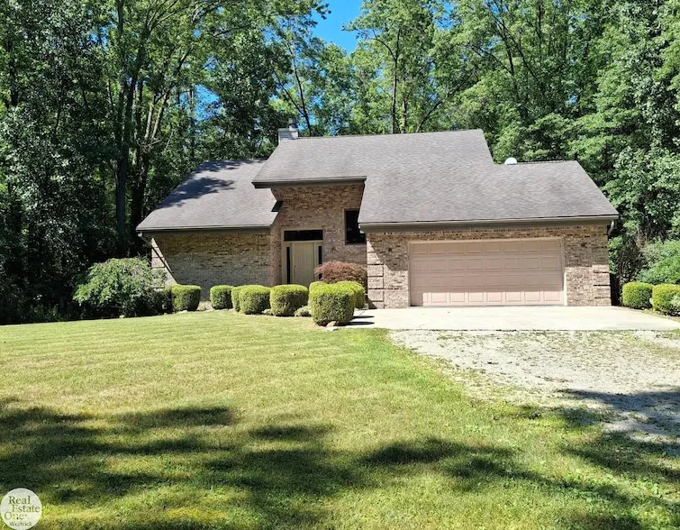 Quiet Cottrellville Township, tucked in the woods is where you will find this 3 bedroom, 2 1/2 bath, like new, lovely, move in ready home featuring total privacy. This 2 story brick and vinyl home has a primary bedroom and bath on 1st level and 2 bedrooms and full bath on second floor.. The full size laundry on first level has storage cabinet and is right outside the garage access door. There is a half bath across from the laundry and also right outside the garage door for easy access when playing or working outside and in garage. You will love sitting next to the cozy natural wood fireplace on a cold winter day as well as opening the three door walls on the warm sunny days to experience nature at it's best and the cool breezes offered by the shade around the home. What a treat to have three door walls to escape to the brand new full deck that was just finished in June 2025 surrounding the rear of the home. Seller appreciated the warmth of the natural wood fireplace on cooler days just to take the chill off the home. NOTE: There is a propane gas line to the fireplace that can be connected if you choose to convert. AND BONUS: Natural gas is now available at the road. Full basement with dry bar is mostly finished and just needs your finishing touches. There is a Entertainment Room, Mechanical room and the front room of the basement has a closet that has all the electrical boxes. There is 110 and 220.