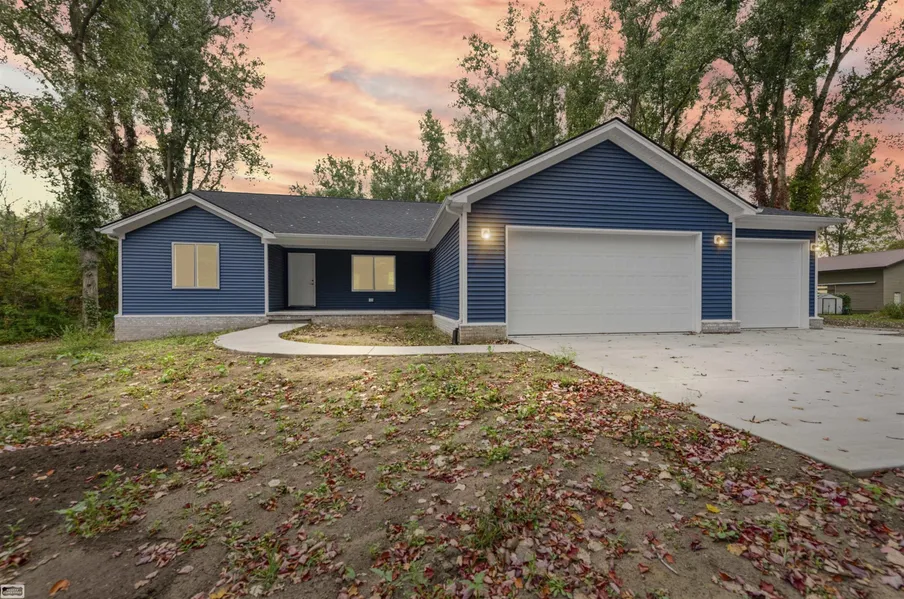 New Build 3-bedroom, 2 Bath home blends modern luxury on a peaceful nearly 3-Acre country estate lot, completely surrounded by mature trees. Just minutes from shopping & I-94, this Custom-built open flow Ranch offers a covered porch with open flow floorplan where the chef’s kitchen shines! Soft blues & fawn tones accent the gorgeous marble backsplash compliments an all granite kitchen with oversized Island featuring 6-deep storage drawers. A large walk-in pantry, laundry room & wide mudroom off the 3+Car Garage—(unique 4th Bay 11' x 26' opens to the backyard) gives this home immense storage & function. Primary En Suite features WIC, Dual Wifi- compatible Mirrors, oversized walk-in shower & a bonus closet! Builder Warranty Included! The primary suite is a true retreat, featuring a generous walk-in closet plus an additional bonus closet, a walk-in shower with upgraded tile, and WiFi-co...