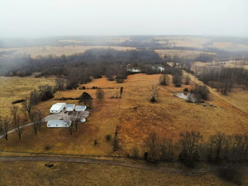 These secluded 42 +/- acres in Saint Clair County have plenty of opportunity. The property has a 1,500 square foot, 2 bed, 1 bath, metal sided building, as well as a 1,586 square foot, metal, concrete floored building with two septic systems and two wells. Both of these buildings are currently being utilized for a business, but could easily be converted into nice living space or would make a premier deer camp. There are also two other garage/shops on the property that could be used for vehicle or heavy equipment storage. This property sports three ponds, two of which are stocked with catfish, and a wet weather creek, providing plenty of water for cattle and wildlife. There are roughly 25 acres of mature timber, giving plenty of cover for deer and turkey, so it doesn't take long to begin seeing signs of abundant wildlife as you walk through. The other half of the property has nice pasture...
