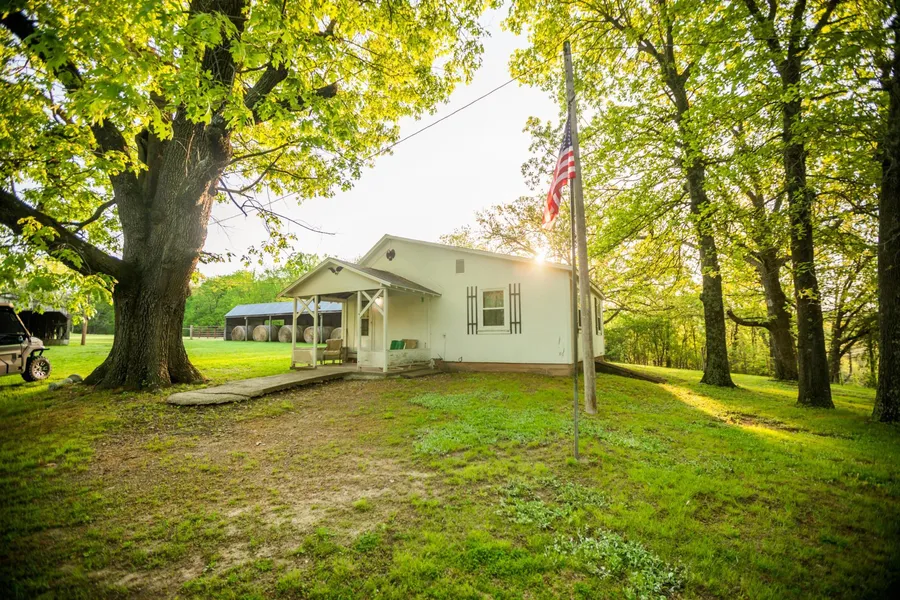 Take a look at this 2-bedroom home just off of paved highway with a short drive from Collins, Missouri. Located just seventeen miles from Stockton and about fifteen miles to Pomme De Terre Lake, this is the perfect location to live or have a weekend retreat. This hard-timbered forty acres comes with all the amenities for living away from the city. The home has original wood floors covered with area rugs that are sure to keep you warm with a wood stove that has just had a new chimney installed. The bathroom addition on the back lends a place for showering and bathing with laundry hookups. Sit out on the front porch and watch the wildlife in the mornings and evenings.