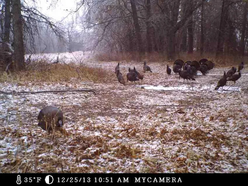 This farm is absolutely the best waterfowl, deer and turkey hunting farm I have ever seen. Words and pictures doesn't do it justice. Land is made up of 165 acres timber, 138 acres of cropland and crp, and 100 acres of water. Some of the best fishing around on one of the 8 ponds including a 65 acre and a 6 acre lake, both full of huge crappie, catfish and bass. The waterfowl hunting is unbelievable, with 5 pit blinds on the 65 lake. Also 3/4 of mile of Osage river frontage, this is the flyway for the waterfowl, there were ducks and geese everywhere. Bottom river ground makes the crop ground some of the best around. With very high yields year after year. The crp is the tallest I have ever seen, a lot of it is over your head, and the landowner has also planted buffer strips along the gravel road to create a wall, so no way can someone see into the farm fields. We saw close to a hundred dee...