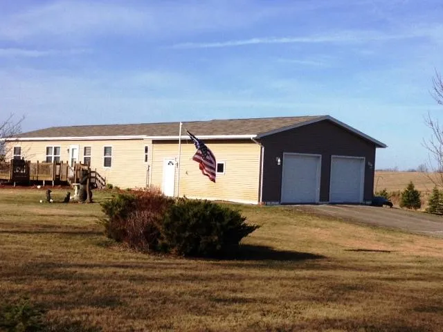 Terrific 3BR 2BA manufactured home on over 34 acres. 2000+ sq ft on main level, full basement with egress windows. Enormous room sizes, main floor laundry, 2-car attached insulated garage, 2-car detached heated garage with shop, 32x50 machine shed. Great value!