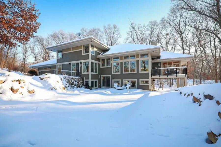 Designed and built by locally renowned Bruce Lenzen Homes. Truly immaculate, with too many luxuries to list! Abundant natural light throughout with floor to ceiling windows in the vaulted great room. The main level boasts a spa-like owner's suite that intelligently ties into the laundry room, chef's kitchen, vaulted great room, 3-season porch with wood burning fireplace, and a deck that overlooks the professionally landscaped in ground pool and wooded lot. The walkout basement is perfect for entertaining featuring a full bar, wine, family room and entertainment area that walks out to a large private patio. Lastly, enjoy the St. Croix River Valley to the fullest with 800+ feet of shared river frontage/beach, community dock, and 28 acres of conservatory land hiking or snowshoeing trails. Truly a paradise along the St. Croix River.