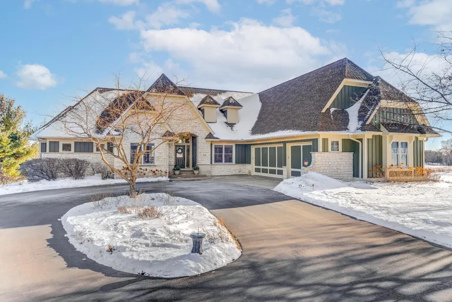 Welcome to this immaculate walkout executive rambler situated on almost 1.7 acres of wonderfully landscaped property overlooking the 16th hole of the Troy Burne golf course. This thoughtfully designed home is perfect for flexible formal and informal entertaining and living. The large foyer leads into a vaulted living room featuring a gas fireplace with an undeniable view, an updated shiplap accented dining room, butler walkthrough, and open gourmet kitchen with a center island and all new stainless appliances. Relax in the beautiful sunroom that overlooks a deck where you can watch the sunrise over the golf course. Also on the main level, a study with a wall of custom built-ins for a perfect home office, and an owner's suite with separate walk-in closets, bath with dual sinks, separate soaking tub, and stand-alone shower. Host a casual gathering in the lower level with a cozy family room and second fireplace, newly finished entertainment area with a wet bar, game table room perfect for shuffleboard (which can stay), and you will love the second owner's suite. Two additional bedrooms with a Jack and Jill bath finish off the lower level. Lots of additional storage and an oversized 3+ car garage. The Troy Burne Village Golf Community features a Tom Lehman designed golf course and club house with an active neighborhood, lighted walking paths and a private 10-acre park/pickle ball/gazebo overlooking the St Croix River!
