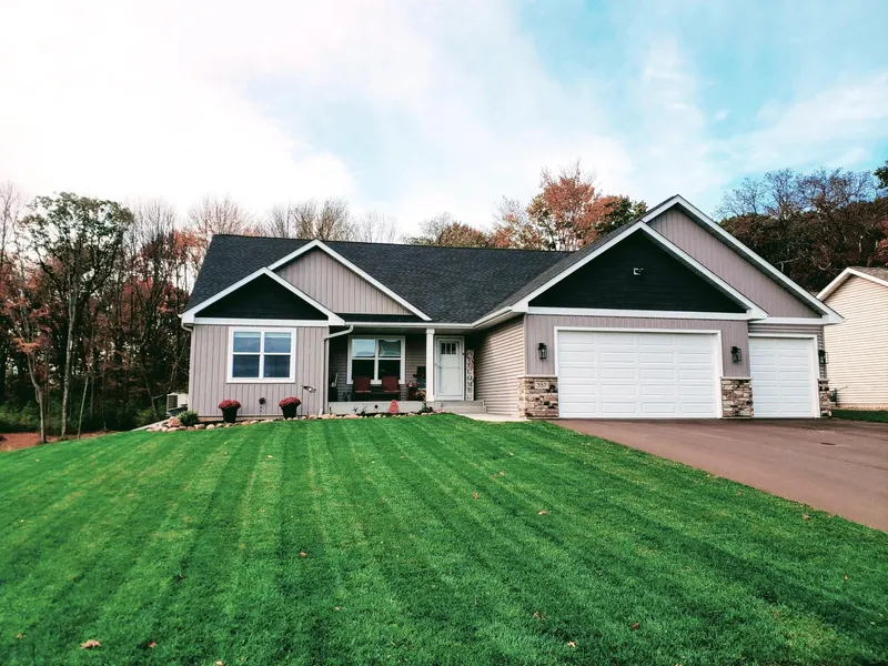 WOW! New Construction without the stress of building! Completed July 2023, this beautiful walkout rambler boasts a light/bright open floor plan with 1813 FSF on main! Features incl 3 bedrms PLUS office, 2 full baths & 3 car garage with full width driveway. You'll love the vaulted ceiling, primary suite with walk-in closet, spacious kitchen with pantry, granite island/breakfast bar & light-filled dining space. Build Instant equity by finishing walkout lower level. Upgrades incl: ext-vented microhood, deck ledger, office door & sliding door to WIC, upgraded S/S appliances, FULLY sodded yard plus many electrical items: dimmers, fan timer, garage fan outlets/switch. Seller Enhancements: fully fenced backyard, flower garden, irrigation meter, shades, waste container "patio", garage fans, tables & shelving. Numerous rear windows provide fantastic view of nature/park area. Quick access to all St. Croix Valley & Twin Cities amenities incl shopping/restaurants/parks/trails! Move in & ENJOY!