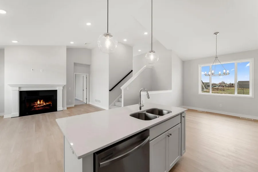 $18,675 in Builder Incentives applied as a Price Reduction. Finished New Construction! The Nora Floorplan - Thoughtfully Designed for Modern Living A welcoming foyer entry with a powder room and coat closet leads up to the open-concept great room, where a gas fireplace with a sleek Kenwood surround and Absolute Black granite face creates a cozy yet sophisticated centerpiece. The adjacent spacious kitchen and dining area boast Frost White Quartz countertops, a matching backsplash, stylish pendant lighting over the island, and a freestanding gas range for an elevated cooking experience. The main-level owner's suite offers a private retreat, featuring a walk-in closet, dual sinks, and a spacious walk-in shower. Upstairs, a large loft provides additional flexible living space, complemented by two generous bedrooms, both with walk-in closets, and a well-appointed bathroom. The unfinished walk...