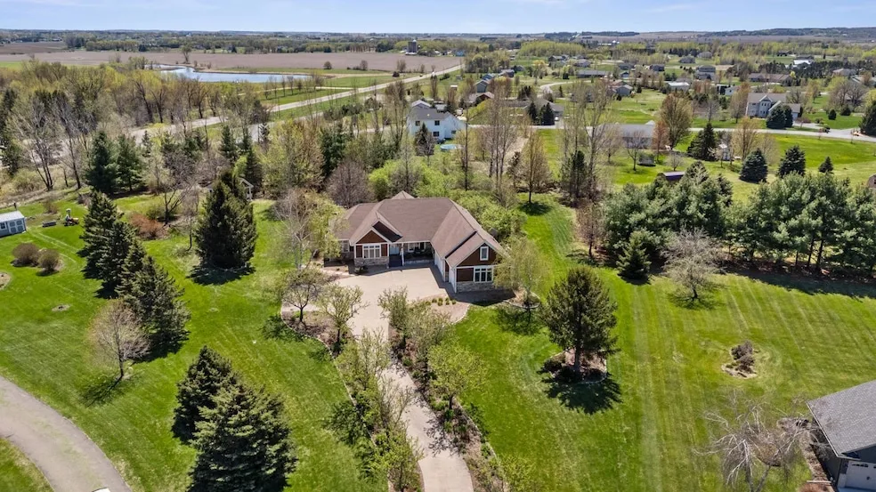 A Sanctuary of Refined Living: Executive Rambler on Two Acres of Tranquility Nestled within a quiet cul-de-sac, this meticulously crafted executive rambler presents an unparalleled opportunity to experience luxury living on a sprawling two-acre estate. This residence is a testament to timeless elegance and thoughtful design, offering a harmonious blend of sophisticated interiors and breathtaking outdoor spaces. From the moment you arrive, the property exudes an aura of distinction. The stamped concrete driveway leads to a heated three-car garage, complete with commercial-grade doors and a bonus room, providing ample space for vehicles and hobbies. The meticulously manicured, irrigated lawn stretches out before you, framed by lush landscaping and vibrant perennial gardens, creating a picturesque and inviting setting. The heart of the home is its breathtaking interior, where high-end finishes and impeccable craftsmanship converge to create an atmosphere of refined comfort. Rich cherry floors, custom cherry cabinets, marble and granite countertops, top-of-the-line stainless steel appliances offer both beauty and functionality. Enjoy the beauty of the surrounding landscape from your expansive cedar deck, overlooking the private acreage and its tranquil pond. The backyard is a true oasis, designed for both relaxation and recreation. A charming fire pit provides a cozy gathering spot for evening gatherings, while a delightful garden shed/playhouse adds a touch of whimsy. Inside, the home is bathed in natural light, creating bright and airy spaces that are both inviting and sophisticated. Two stack stone gas fireplaces provide warmth and ambiance, perfect for cozy evenings spent with loved ones. The lower level features a custom bar, ideal for entertaining guests and creating lasting memories. The elegant, timeless craftsmanship is evident in every detail, from the meticulously chosen materials to the thoughtfully designed spaces. This is a home where you can truly relax, unwind, and escape the stresses of daily life. This executive rambler offers the perfect combination of luxury, comfort, and privacy, all within a convenient location. This is more than just a home; it's an investment in your future, a place where you can create lasting memories and enjoy the serenity of a life well-lived.