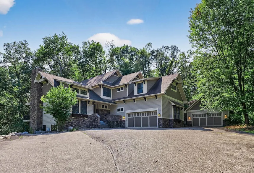 Set on two adjoining lots totaling over 8 private acres in the Birch Park neighborhood, this retreat-like estate is just minutes from both downtown Stillwater and Hudson and a golf cart ride away from White Eagle Golf Club. The property showcases a custom-built main residence, a beautifully remodeled carriage house, and four heated garage stalls perfect for all your toys and hobbies. Step inside the main home and be welcomed by soaring vaulted ceilings and a dramatic stone fireplace. The refreshed kitchen boasts a generous center island, a cozy sitting area with its own stone fireplace, and direct access to a screened porch with serene wooded views an ideal spot for morning coffee. Upstairs, you ll find four bedrooms and a conveniently located laundry room. The primary suite is thoughtfully designed with dual walk-in closets and a spa-like bath featuring a tiled steam shower, heated floors, and a whirlpool tub. The recently renovated lower level impresses with coffered ceilings, a theater, wet bar, gas fireplace, radiant heated floors, and a fifth bedroom currently used as a fitness room. The remodeled (2023) carriage house offers flexible space with a gas stove, A/C split, custom cabinetry, hardwood floors, and high-speed fiber internet perfect for a home office, guest suite, or entertaining. Sportsmen will enjoy the surrounding wildlife and wooded property that allows for your own private shooting range. The grounds have been freshly graded with a survey and design concepts in place, providing endless opportunities to add your dream amenities whether it s a pool, pickleball court, gardens, or more.