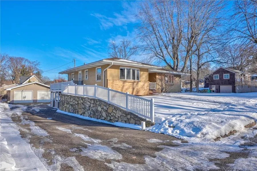 Charming 3 bed, 2 bath home within walking distance to historic downtown Hudson! Wood floors span the main level, complementing the spacious & functional layout filled with natural light. The kitchen features beautiful wood cabinetry, stainless steel appliances, and ample cabinet and counter space, flowing seamlessly into the dining room - ideal for hosting, preparing, and enjoying meals. The remodeled main bath features a jetted tub, along with updated fixtures and finishes. The finished lower level adds excellent living and entertaining space, complete with a remodeled bathroom. Enjoy outdoor living on the large walkout deck and covered porch overlooking the massive, fenced yard. Additional highlights include a tuck-under garage perfect for storage or a workshop, an attached garden shed, and a detached oversized 2-car garage. Situated in an inviting neighborhood, you’ll love the convenient location moments from shops, dining, parks, schools, and the St. Croix River. Don’t wait to make this wonderful home yours!