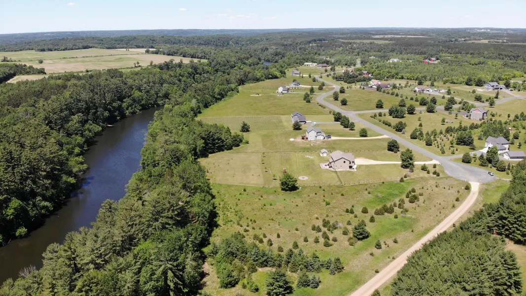 Wow! Beautiful lot on the bluffs of the Apple River for sale. Very light covenants, large outbuildings allowed, copies available upon request. The lot has had the corners staked for your convenience when walking the land. You can enjoy never having a neighbor behind you, gorgeous backyard views, and deeded access to a calm area of the Apple River. The deeded access abuts the property and runs near lots 18 and 19, so the river is just a short walk away. Although the lot backs up to the river, it is on the bluffs and there is no physical access to the river directly from the lot. Views of the river will most likely not be possible from the future home, but just a short walk to the backyard provides some stunning blufftop river views. The shared neighborhood area has a level area with a fire pit, canoe rack, and a small dock. The lot is open builder but build packages are available upon request.