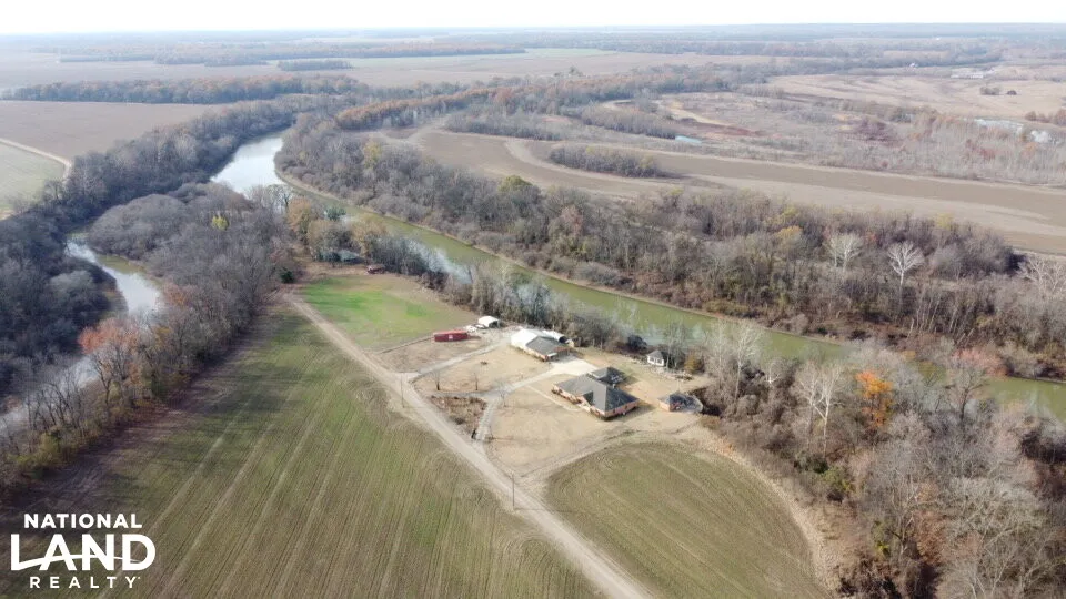 In the Arkansas Delta, a gravel road meanders through the woods and dead ends at the Blackfish Compound, 65 acres at the confluence of Frenchman's and Blackfish Bayous. A fenced-in two acres overlook this river and include a 3,590 sq. ft. home, 750 sq. ft. apartment, 120 sq. ft. shop, BBQ shack, gazebo, and outbuildings. Outside of the fence lies a sportsmen's paradise, complete with a water-controlled duck hole, deer stands, and fishing access.