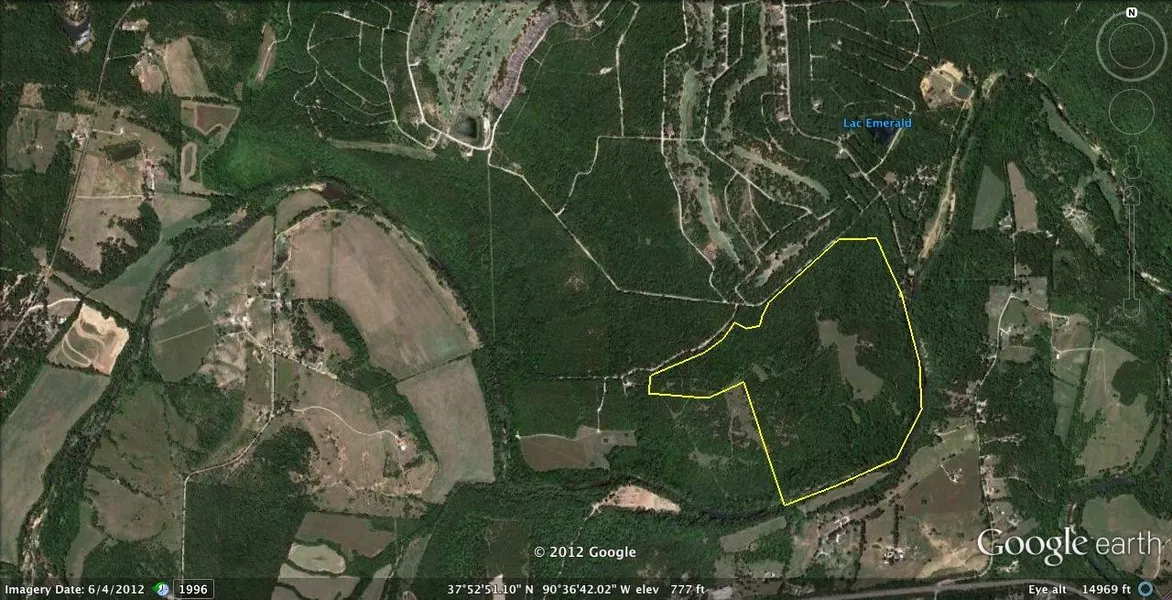Very private 156 acres in Terre Du Lac Resort area just a 35 minute drive from St. Louis, Missouri: 25 tillable acres; 100 timbered acres; and 31 acres of brush.