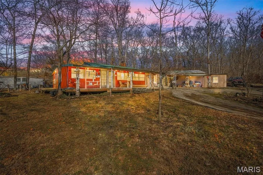 Escape to your private retreat near Iron Mountain Lake! This 3-bed, 1.5-bath home sits on six lots (1.37 acres) with a potential second residence/workshop offering 700+ sq. ft. The main home features a gas fireplace, eat-in kitchen with appliances, and a metal roof. Enjoy the expansive covered front porch, perfect for relaxing in the peaceful, wooded setting. The property includes an attached carport, covered patio, workshop, storage areas, and a plant storage space. A circular driveway provides easy access and extra parking. Public utilities plus an unused well offer flexibility. Just a short walk to the lakeshore, this landscaped property bursts into bloom every spring. Whether you need a full-time home, weekend getaway, or investment, this property is full of possibilities bring your vision and make it your own! Being Sold As/Is. 619 Columbia Dr is also included in sale. Additional Rooms: Sun Room