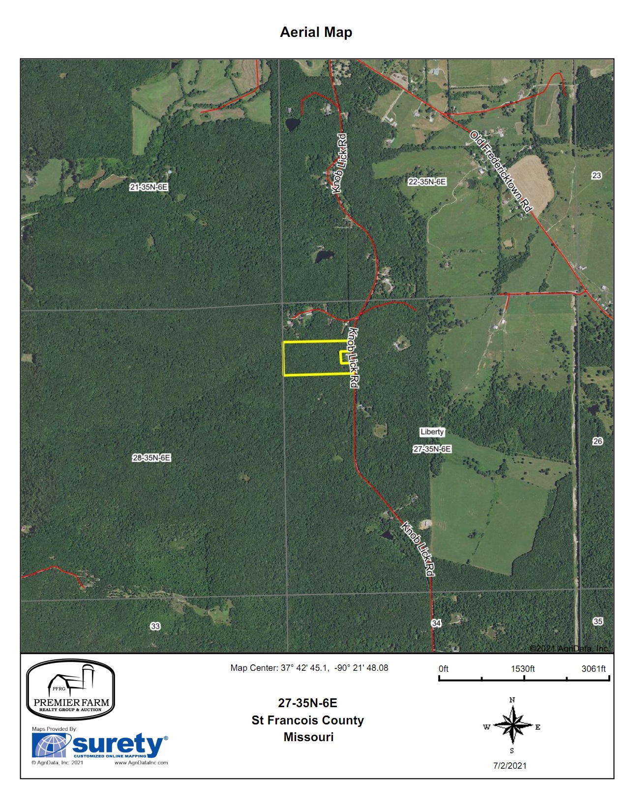 This all-timber property is located along Knob Lick Rd. southeast of Farmington, Missouri. There is an existing electric service on site and has paved road frontage. The timber stand is mature and ready for an immediate harvest if desired. There is a dominant stand of pine along the road frontage where the existing electric service is located. The property was previously a recreational get-a-way that is equipped with a full camp site set-up with RV/Camper & 110-volt receptacles, firepit, picnic table, storage shed, etc. The property has a wet weather creek that meanders across the entire property and the topography provides for a great pond site and multiple building sites.