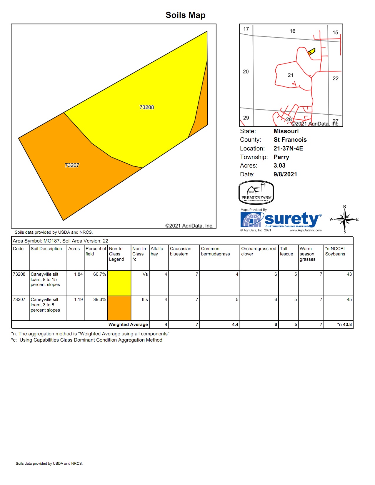 Search for detailed parcel information including; Elevation & Vegetation Maps, Ownership Information, Detailed Parcel Information, Crop History Map, Soil Survey Productivity Data, and more.