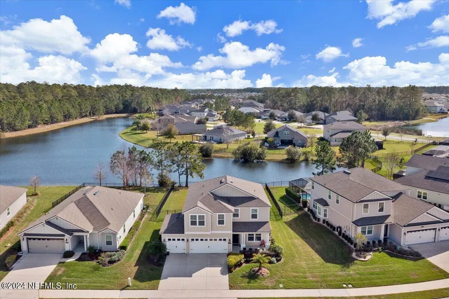 Welcome to this beautiful, move-in ready, water view lot 4 bedroom/4 bath home! The home's features include an open floor plan, gourmet kitchen with two convection ovens, large apron sink and reverse osmosis water filtration system. Flooring throughout the home is ceramic and luxury vinyl tile. There are custom closets, including under the staircase storage. The interior also includes shiplap feature walls and two barn doors to separate a downstairs bedroom/guest area and an office/flex room at the front of the home. There is a large triple slider door that welcomes you out to the beautiful extended screened in patio area where you can relax and take in the tranquil water view. Upstairs is where you will find the primary suite and two additional bedrooms, one with an en suite, a fourth full bathroom, laundry room and large bonus room with a double trey ceiling. Trailmark amenities include a fitness center, parks/playgrounds, zero gravity pool, kayak launch, sports fields, walking trails and dog park. Trailmark is convienent to I-95 and minutes away from Historical downtown Saint Augustine, golf courses, shopping, fine dining, beaches and top-rated schools.