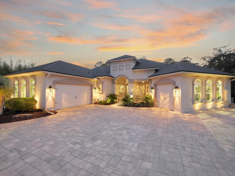 Come find your new home at 372 Sophia Terrace, an elegant custom estate situated on almost half an acre in the exclusive, gated golf community of Palencia. Boasting 4 bedrooms, a flex space and 4 bathrooms, including a versatile multigenerational suite all on one level, this residence provides ample space for living and entertaining. Step inside to discover an expansive open floor plan featuring 10-foot coffered ceilings, hardwood floors and a sleek gas fireplace with built-ins. The gourmet kitchen has been thoughtfully upgraded with designer cabinetry, quartz countertops, LED cabinet lighting, Bosch double ovens, oversized gas cooktop with chimney hood and a walk-in pantry. Recent updates include a brand-new refrigerator and dishwasher, new ceiling fans in bedrooms, closet systems installed in primary and guest-suite, hardwood flooring in bedrooms and fresh interior paint throughout. Enjoy the comfort of your abode, or take advantage of an array of world-class amenities in Palencia including an Arthur Hill designed golf course, award winning private club house, Tolomato Boardwalk to the Intracoastal Waterway, 30-acre park system, swimming pools, tennis courts, basketball courts, sports fields and more. Conveniently located off US-1 just north of Historic St. Augustine and south of Ponte Vedra, you have easy access to shopping, restaurants and beaches. 372 Sophia Terrace provides the ideal balance of urban accessibility with suburban tranquility. Nothing compares.
