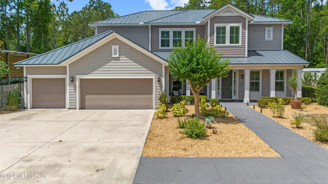 This 6+ acre modern farmhouse is nestled in the heart of the most desirable areas of St. Johns county! The LOCATION of this unique property is EVERYTHING! Mere minutes to the top public schools in Florida, I-95 & 9B, away from the many heavily congested areas of the growing developments both east and west of I-95 giving access to the ''front of the line.'' Zoned OR, no HOA/CDD! The open floorplan of this home caters to so many needs...front living room has private access to the master wing should you prefer to convert to an additional closet, on suite nursery, office, etc. Additionally, large walk-in closets in every bedroom, the mudroom with custom built drop-zones, the TWO XL laundry rooms, the attic access door for easier storage, are just some of the features that will keep you organized. The home boasts beautiful custom trim-work and tile throughout. The summer kitchen, firepit, hot tub and pool with has a large sun-shelf and deep-end center are perfect for entertaining. Note the extra open paver areas for a band, ping pong tables, etc. Huge driveway leading to 3-car garage, and the multiple storage sheds/ 40x60' building and pole barn make it easy to store anything from RVs to boats. Plenty of space to set up a pickleball court, too! Certified energy efficient home built in 2011, now with a brand-new metal roof and dual-zoned AC, with its own well/septic, keeps your overall monthly utility costs surprisingly low!!! More of the home's highlights include: water softener incl. (2) reverse osmosis faucets, plantation shutters on every window of the home, tankless insta-hot water heater, whole-home Generac generator, separate second access to the property, plenty of privacy, wood-burning fireplace in the kitchen nook, across the street from Gourd Island-peaceful hiking/nature trails...and SO much more!!!