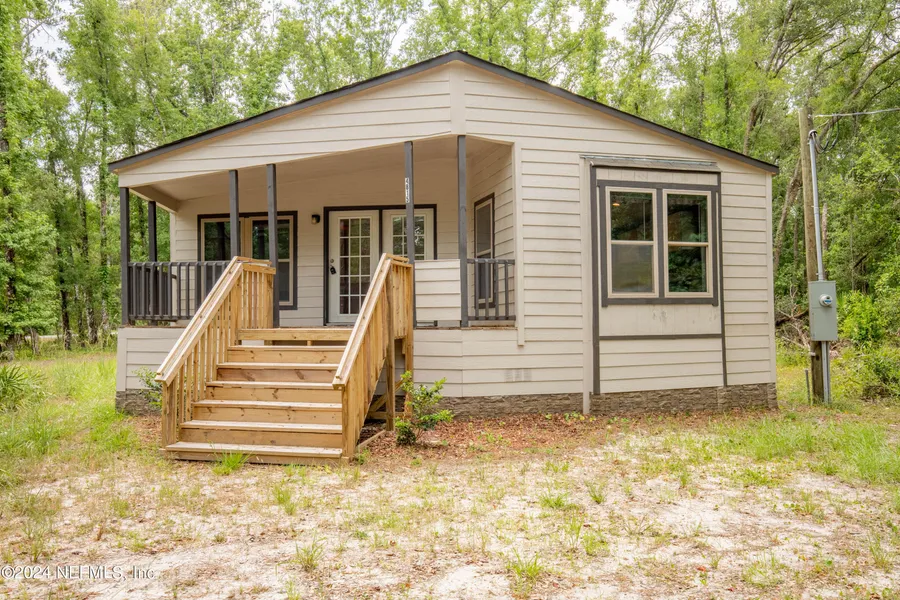2023 Manufactured home w/3bedroom 2 bath sitting on a large corner lot. Almost 1 acre of land on double lot. Large open floorplan. Luxury Vinylk Plank flooring. Spacious kitchen w/lots of cabinets & opens to Family room. Primary Bath is spacious w/attached bath to include 2 vanities, soaking tub & separate shower. Large open front porch/deck. Peaceful area surrounded by nature. New water softener, new well and septic. Minutes from the I-95, St Augustine, Palatka, shopping & restaurants.