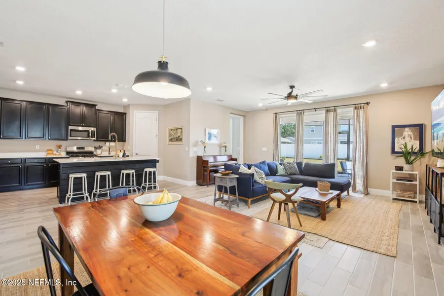 This beautifully updated home in the desirable Creekside at Twin Creeks neighborhood offers a blend of comfort and style. Featuring a 4-bedroom, 3- Full bath home with an Open-concept Split Floor plan, 9-foot ceilings and 8-foot doors. The private master suite is located at the rear of the home for added tranquility. Chefs Kitchen features Quartz Countertops, 42'' cabinets, solid brass fixtures, a large kitchen island with a shiplap accent, and stylish cabinetry hardware. You'll save money and time with all of the upgrades on this one: New lighting, Bath Fixtures, Privacy fence, Finished Garage with Shark Coated Flooring, Transferable Termite Bond, Fresh paint, Water Softener, Expanded paver driveway, beautiful new LVP flooring in every bedroom. Step out onto your screened lanai through slider doors into your backyard. Seller Offering a One year Home warranty for Peace of Mind and If buyer chooses First Coast Mortgage NMLS #1953441, a $3,000 towards closing costs, minimum loan amount of $450,000 with First Coast Mortgage Funding, Christopher Austin NMLS #648815. This is not a commitment to lend. Equal Housing Opportunity. Additional features of the Broomsedge Circle Retreat - Widened Paved Driveway - Water softener - Shark Coat Garage floor - New exterior garage lights - Finished Garage with shelving and cabinetry - Entire home freshly repainted interior - Cabinetry and shelving added to laundry room - Drop and Go Feature wall - Two Updated bathrooms with new hardware, fixtures - All new Luxury Vinyl Plank flooring in all bedrooms - Solid brass kitchen faucet and cabinetry hardware - Shiplap Feature on kitchen island - Shiplap Feature wall in guest rooms - Ceiling fans/Lights in all bedrooms + Family room - Extended back paver patio with fire pit - Brand new 8'x12' TuffShed - Citrus and Peach Trees in backyard - Privacy Fence with dual side entry options - Full Gutter system installed - Drop down attic ladder + extended attic storage space Standard home features include: - RING doorbell system - Whole house WIFI extender - Plantation blinds on all windows - Pre-wired for HabiTech security system Neighborhood Features: - Pool with gym - 3 community playgrounds - Lake with dock, kayaks, fishing coming soon!!! - St. Johns County Park slated to break ground right next to the brand new K-12 - Brand new K-12 opened inside neighborhood August 2024 - Brand new Beachside Highschool right across the street - Easy access to I-95, 9B and 295 - 20 minutes to Micklers beach - Less than 15 minutes to Costco - Perfect location to get to both Old St. Augustine and downtown Jacksonville in a quick drive.