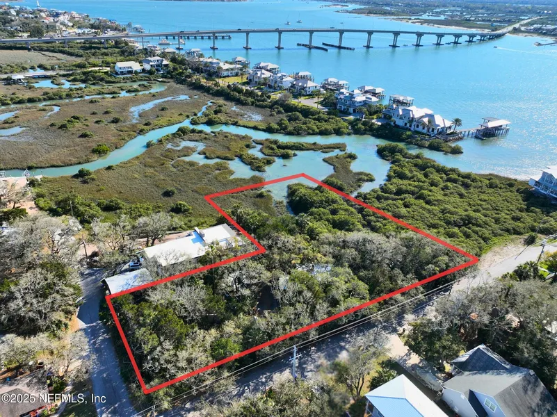 Historic Waterfront Retreat with Development Potential. Welcome to 177 Surfside Ave, a historic beach cottage on multiple waterfront lots along a tidal creek connecting to the Intracoastal Waterway. Once home to Pulitzer Prize-winning author Sinclair Lewis, this early 1900s retreat features a coquina fireplace and a separate 1/1 guest house, currently a vacation rental. Zoned CHT (Commercial Highway Tourist), the property offers versatile development potential, allowing for residential, vacation rentals, boutique lodging, or mixed-use projects (pending approval). Build additional homes or expand upon this unique slice of Old Florida charm. Just steps from the beach and Vilano Beach Town Center, this property blends privacy, accessibility, and investment opportunity in one of St. Augustine's most desirable locations. Listing agent must be present for all showings. No lockbox. Buyer needs ...