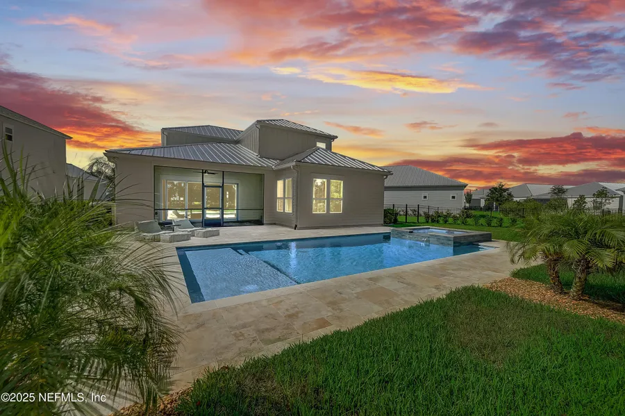The seller has PAID OFF THE CDD BOND IN FULL (a $35,000 value), resulting in significantly reduced annual CDD fees! Situated on one of the largest lots in Beachwalk, this like-new, two-story home features a recently added pool and spa, and is ideally located across from Dorado Park in a friendly cul-de-sac - just a short stroll from the incredible 14-acre Crystal Lagoon. With an open and airy floor plan, this home offers versatility for families, empty-nesters, or those needing space for multi-generational living. The flexible layout includes 4 bedrooms and 3 bathrooms, along with a spacious lanai perfect for relaxing or entertaining. One of only a few homes situated on Dorado Park, it's the perfect location for kids to play, host block parties, with plenty of room for neighborhood games like flag football or soccer. The expansive backyard is fully fenced, newly landscaped, and offers privacy with no neighbors behind or across the street. Inside, the chef's kitchen impresses with a large island, quartz countertops, gas range, double ovens, and abundant cabinetry. Soaring 10-foot ceilings elevate the main living areas and the primary suite. The oversized primary bedroom includes two walk-in closets and a luxurious double walk-in shower. A first-floor bedroom with its own ensuite makes an ideal guest room or in-law suite. Upstairs, two additional bedrooms share a Jack-and-Jill bathroom and offer very generous closet space. The dining room features dramatic double-height ceilings, adding to the home's elegance. Additional highlights include a water softener system and overhead storage racks in the garage. Beachwalk offers unparalleled amenities, including the stunning Crystal Lagoon with sandy beaches and clear blue waters, waterslides, kayaking, paddleboarding, a clubhouse with restaurant and bar, swim-up bar, state-of-the-art fitness center, tennis and pickleball courts, a dog splash park, and a putting green. Located in the top-rated St. Johns County School District, this home is within walking distance of the newest High School in St Johns county, Beachside High School. Don't miss this opportunity to enjoy luxury, privacy, and a true resort lifestyleright at home!