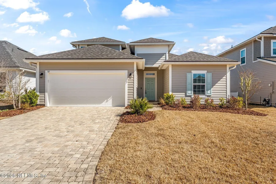 Welcome to Silverleaf, a sought-after golf cart community known for its top-rated ''A'' schools and outstanding amenities. Located in the desirable Holly Forest neighborhood, this beautifully designed single-family home offers 4 bedrooms, 3 bathrooms, and approximately 2,200 square feet of well-planned living space. Three bedrooms, including the primary suite, are located on the main level, while the expansive upstairs bedroom suite provides the perfect option for a private guest retreat, bonus room, or flexible living space. The open-concept layout is anchored by a stunning kitchen featuring crisp white cabinetry and bright quartz countertops, all overlooking the spacious family room and casual dining area. Wood-look laminate flooring flows through the main living areas, combining durability with timeless style. Large sliding glass doors lead to a covered lanai and a generous, level backyard, ideal for relaxing or entertaining. The home sits on a quiet cul-de-sac and includes a two-car garage with additional driveway parking. The primary suite offers a spa-like bathroom with dual vanities and a large walk-in closet. A dedicated laundry room includes washer and dryer hookups for added convenience. Residents of Silverleaf enjoy access to exceptional community amenities, including multiple pools, a splash park, lap pool, tennis and pickleball courts, clubhouse, dog parks, and more. Conveniently located near I-95 and major roadways, this home offers easy access to both historic St. Augustine and Downtown Jacksonville, each just about 25 minutes away.