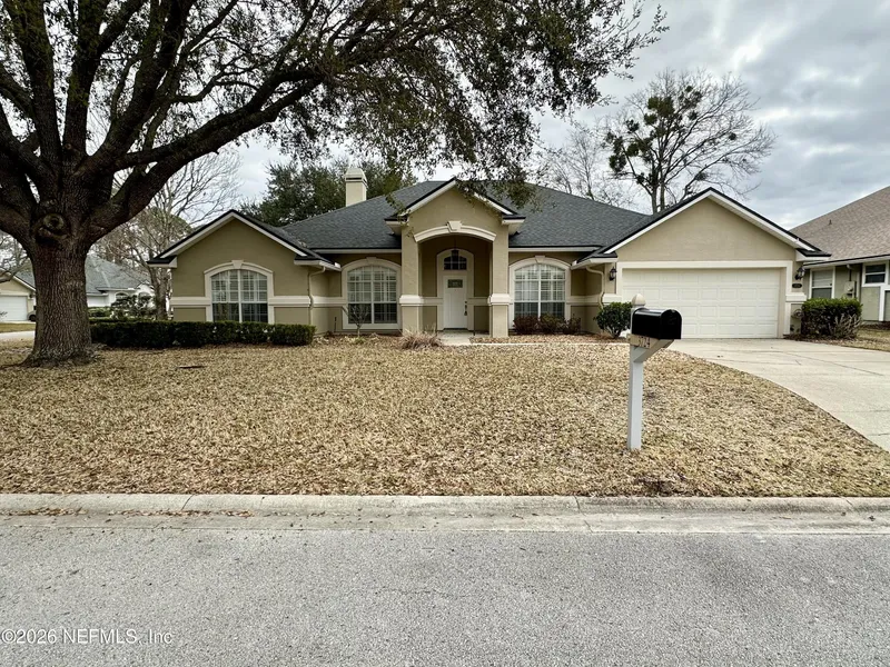 Enjoy this spacious, corner lot home in Julington Creek Plantation! Enter the home into the spacious former- formal dining off of the entrance, and a flex space- home office, kids lay area, additional sitting area too! Updated kitchen overlooks large family room offering nice built ins and fireplace. The kitchen offers breakfast bar island seating and plenty of storage and counter top space. This unique floor plan offers three full bathrooms. The primary is on one side of the home with an updated dual sink vanity, soaking tub, and stand up shower. A rear bedroom offers another full bathroom- ideal for guest suite or multi generational living! Two other bedrooms share a jack and Jill bathroom set up. Large yard, fully fenced with covered lanai out back. A quick walk to the community park! Residents also gain access to the wonderful amenity center of Julington Creek Plantation! Minutes to ...