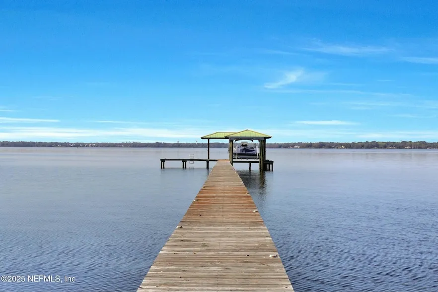 Exquisite 2.16-Acre Riverfront Estate on the St. Johns with Private Dock & Boathouse! Experience breathtaking sunsets and serene water views from almost every room in this custom-built, all-brick 2-story home. Situated on a 2.16-acre lot, this riverfront oasis features a gate with cellular-based keypad, pool and a dock equipped with a covered electric boat lift and jet ski lift. Inside, you'll discover an abundance of luxurious living space, including 6 bedrooms and 4.5 bathrooms. The main floor master suite boasts a sitting area/office nook, a luxurious bath with a walk-in shower, and dual walk-in closets. An additional bedroom with a full bath is also located on the main floor, perfect for a mother-in-law suite. Upstairs, you'll discover four spacious bedrooms, a loft area, and two full baths. The open-concept kitchen and great room boast vaulted ceilings, a cozy fireplace, 42'' maple cabinets, and a walk-in pantry. Additional features include formal living room, butler's pantry, main-floor laundry, attached 3-car garage, and a detached 2.5-car garage/workshop. This home has been thoughtfully updated, including a new roof (2022), bulkhead (2020), two new AC units, LVP flooring, updated bathrooms, new refrigerator, dishwasher, oven, microwave, and a jet ski lift. Located in top-rated St. Johns County, just minutes from beaches, A+ schools, shopping, and dining, this home offers the perfect blend of luxury, privacy, and convenience. Schedule your private tour today!