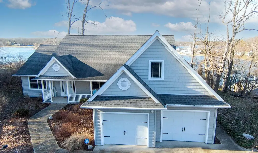-LAKE LIVING AT ITS FINEST-123.78' OF LAKE FRONTAGE-2.5 ACRES-36'X72' POLE BARN with 12' WIDE X 14' HIGH DOOR-You will fall in love with this custom-built home with panoramic views of beautiful All-Sports Pleasant Lake. Home offers a wide-open floor plan with fantastic vaulted ceilings including floor to ceiling windows in the living room, stunning wood floors, large living space, custom kitchen with granite countertops, stainless steel appliances, a large dining area and all with wonderful views of the lake. The primary bedroom is located on the main level with his and her walk-in closets, large primary bath with double vanities and beautiful tile. You will also enjoy having 3 additional great-sized bedrooms all located on the main level. The upper-level bonus room is wonderful for extra guests or an additional entertaining area. The walk-out basement is fully framed and already plumbed for a bathroom. Radiant heating tubing was added to the basement fl