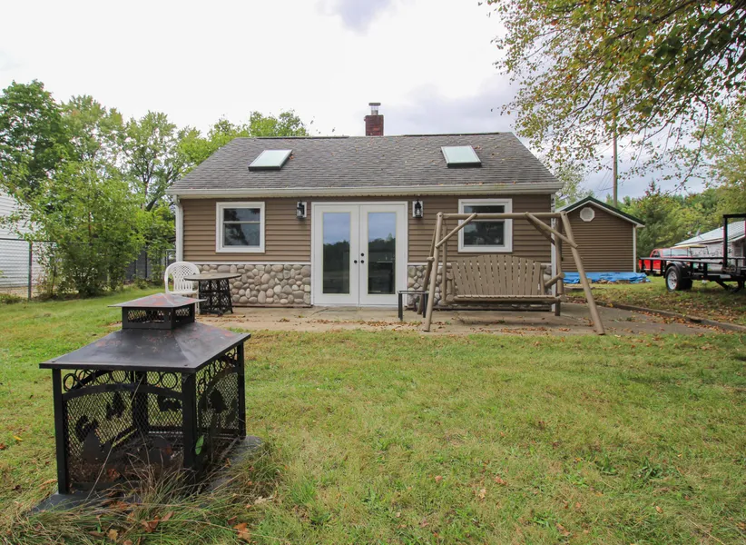 Finish this great home on the river and turn it into your dream escape! Many major updates have already been completed, including new siding, windows, a stone-accented front, skylights, and new doors. Inside, you'll enjoy the tall ceilings and spacious front room with great views of the river. The stunning fireplace wall in the spacious primary bedroom is fantastic, along with his and her closets and an area already started for a custom primary bath. The kitchen is ready for your finishing touches, and there's an extra room perfect for a cozy reading nook or office. Outside, the property features a boathouse located on the dock for easy river access, and a large storage shed with oversized doors and a concrete floor for your lawn equipment. Don't let this incredible opportunity pass you by call today to schedule a showing! BUYERS TO VERIFY ALL LISTING INFORMATION. MEASUREMENTS ARE +/-, BUYER TO VERIFY.