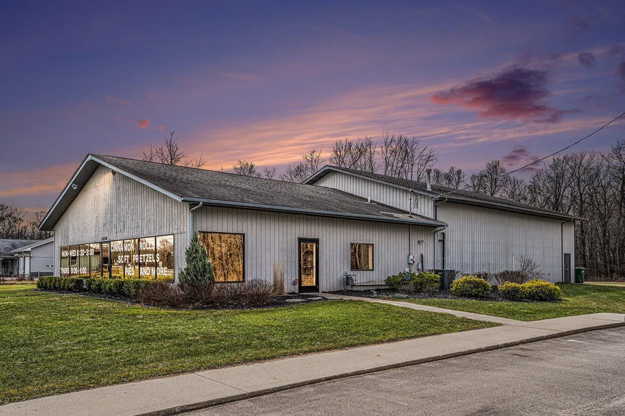 Terrific business location right on US-131 with high visibility, traffic count of approximately 20,000 per day and availability for great signage. Property has 7+ acres in total, room to grow and ability for a high volume of parking. Back of building has 16ft overhead doors and a 12 ft overhead separating front ''office'' area from storage/work area. Work area currently houses an on-demand hot water heater, gas area shop heater and large walk-in coolers all in steel lined insulated interior. ''Office'' area has been used as a sales area for baking business and leads to kitchen that was designed in 2009. Kitchen currently has class 1 vent hood with recycling unit, power supply is 200A with 3 phase converter for equipment on site. Well taken care of building with great potential!