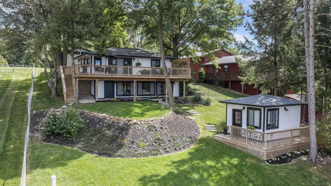 Looking for a peaceful, turnkey lakefront retreat with modern conveniences? This one-of-a-kind, fully rebuilt four-season waterfront home on the private, spring-fed Minnewaukan Lake in southwest Michigan offers the perfect escape. Ideally located just 2.5 hours from Chicago and less than 3 miles from the charming, historic downtown Sturgis, this property combines tranquility with accessibility. Set on a beautifully landscaped and mature.3 acre lot, the home features 75 feet of private sandy beach and a separate, fully insulated four-season bunkhouse — a rare and valuable addition. Surrounded by lush perennial gardens and mature trees, the grounds are as inviting as the home itself. The small, quiet subdivision is just minutes from shopping, dining, and all the conveniences of town. The main residence was completely taken down to the studs and reimagined with a thoughtfully expanded floor...