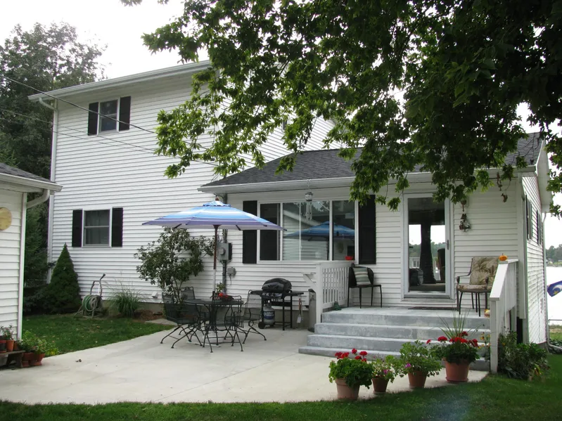 Enjoy the seasons on all-sports Portage Lake! Sandy beach and 6 sections of aluminum dock included with your private frontage! Spacious kitchen has maple cabinets, appliances, snack bar and ceramic tile floor. Living room with brick wood burning fireplace, newer berber carpeting and sliding glass door leading to a 6' x 40' wood deck. 11' x 17' master bedroom has walk-in closet and private bath. Walkout level has second kitchen with white cabinetry, island/snack bar and appliances. Family room has new berber carpeting and sliding glass door leading to the screened-in porch at lake side. 2 storage sheds & all appliances included. Beautiful family home in move-in condition!