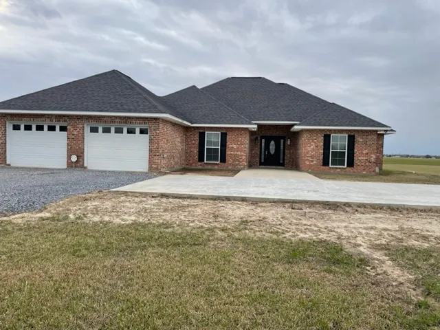 This beautiful six-year-old home on slab sits on 1.9 acres of land and consists of 3 bedrooms and 2 1/2 baths. This spacious home boasts of 9 ft. ceilings with an open and airy feel; beautiful kitchen with a center cooktop island, double wall ovens, and plenty of storage in the stunning cypress cabinetry. All flooring throughout this home are stained/scored concrete. No carpeting. All blinds remain with home. Chandelier in foyer. This home also comes with a half-bath in the closed-in garage, 2 water heaters, microwave oven, cypress cabinets in both full bathrooms updated sewer, walk-in closet in the Master Suite. Schedule your appointment today for this Must See All Electric Home!!