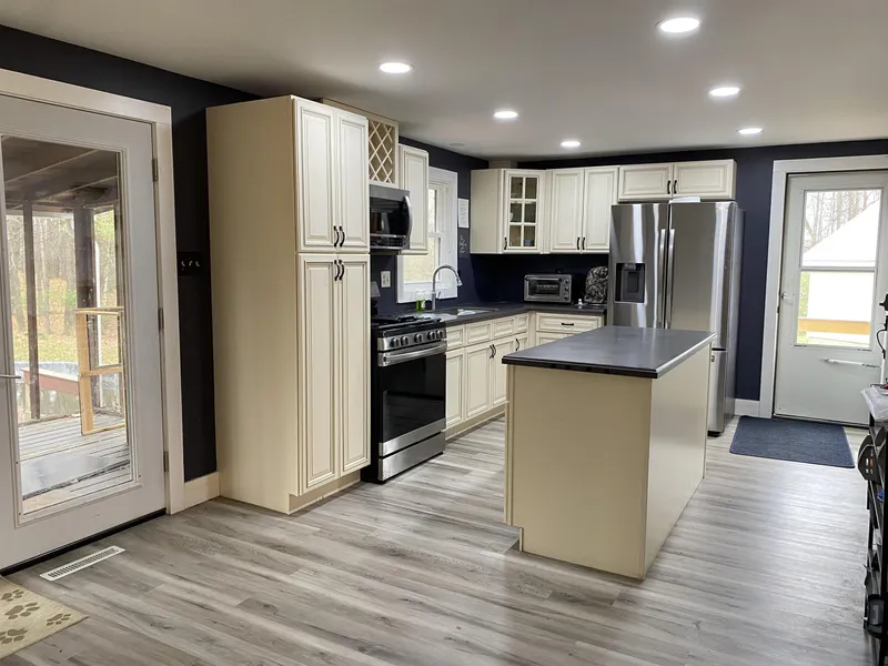 Just outside the Village of Potsdam, this well-maintained three-bedroom, two-bath raised ranch is set on nearly two acres, offering both privacy and convenience. Set back from the road, the property features a detached two-car garage, paved driveway, and inviting outdoor spaces including a two-level wraparound deck, large screened porch, and an above-ground pool. Step inside to a beautiful kitchen, complete with white cabinetry, solid surface countertops, gas range, and a center island. The adjoining dining area features full-glass double doors that open to the large screened porch and deck, allowing easy flow for indoor-outdoor living. A cased window opening the kitchen to the living room offers a connected feel while still maintaining distinct, cozy spaces. Also on the main level are two nicely sized bedrooms—one with double closets—and a spacious full bath with tile-surround tub, large vanity, and linen storage. The lower level adds even more living space, featuring a second living room with a huge built-in bar and a charming decorative red gas stove. A third bedroom, plus a combination bathroom/laundry/storage room, complete the lower level. A comfortable home with room to spread out—both inside and out—this property invites you to settle in and enjoy the peaceful setting while staying close to town conveniences.