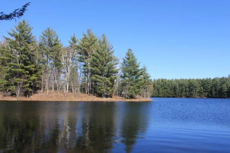 Own a peninsula surrounded by deep water lake and with a comfortable Adirondack cabin! Beautiful, 100 tall white pines with hard shoreline and sandy bottom and two docks. The immediate grounds leading to the cabin consists of soft pine floor manicured to a park like setting for very comfortable and pristine approach. One of the most spectacular settings you could ask for if you are looking for solitude. This section of the lake is totally undeveloped offering the complete Adirondack experience. You would own over 1,500 of shoreline including the outlet. Long 1/4 mile driveway meandering through the white pines and along the shoreline leading to a well built cabin including bedroom, living room, kitchen and wood stove. The cabin sets so close to the lake, you could almost fish out the window.