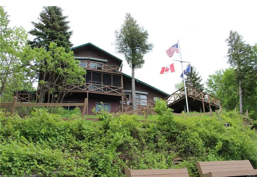Home on the river w/lots of privacy. You will love this setting as soon as you pull down the driveway. Amazing view of the seaway, storage sheds, huge garage w/heated game/play room upstairs, 7 person hot tub, decks that wrap around & main deck gives you lots of room to entertain & relax by the river. Home has nice floor plan with finished room in basement + laundry area & utility room. Dining room and large Living room plus 2Bdrms & baths on main level. Oak spiral staircase leads to master with large closet, bath & door to another wraparound viewing deck plus another bdrm up. On demand generator, central vac and more features to see. Great swimming. Dock w/lift that is negotiable. Really a wonderful home & property to see. 2-10 Home warranty in place for the new owner. Call today
