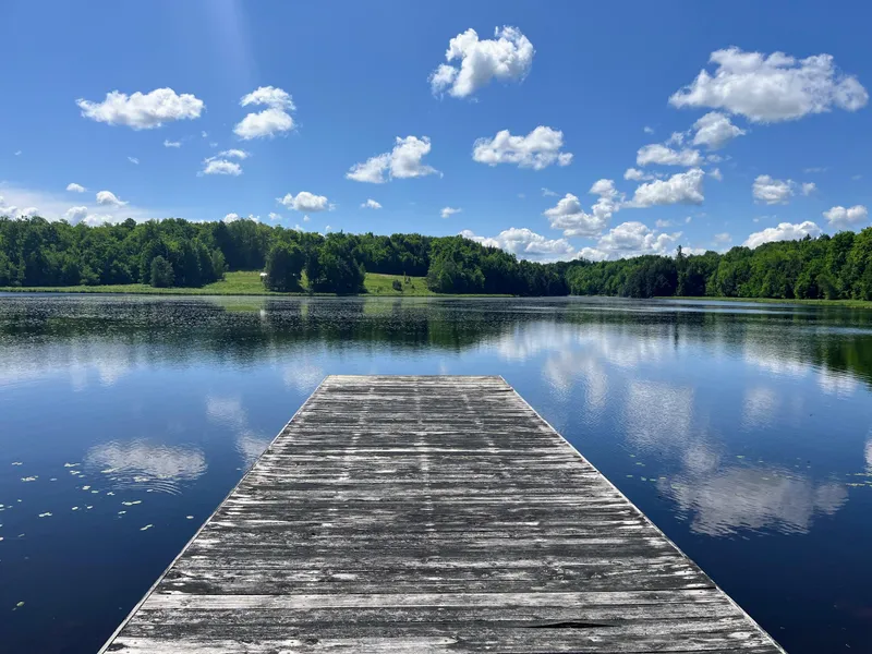 The pond is man-made and its about 25 acres in size with varying depths. It has a unique Island with walkway from the mainland and there is easy access most of the way around it with trails and ro...