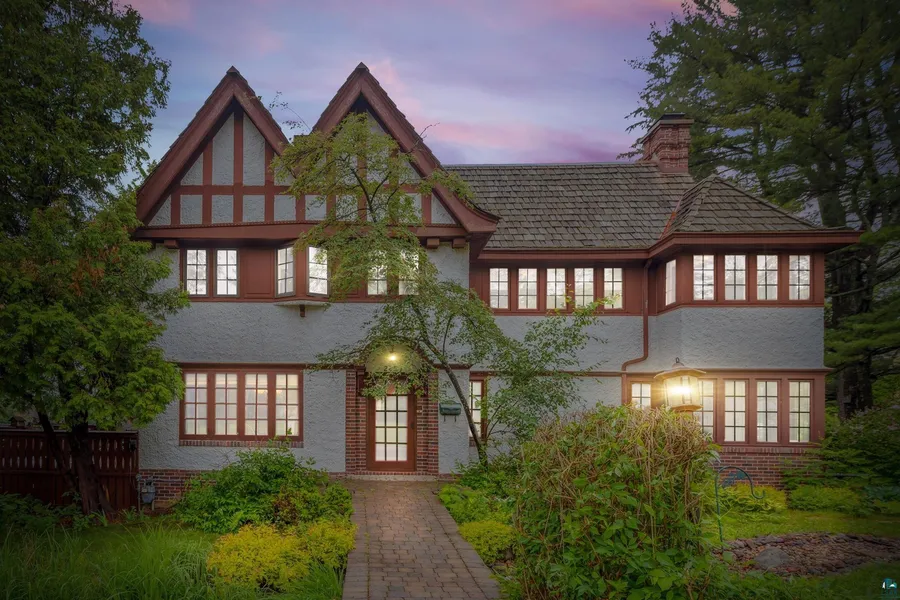 Simply put, this turn of the century home will grace your every day with inspiration and artful living! Originally built in 1914, this Tudor home is nestled on a spectacularly landscaped and sought-after Congdon lot. It's a conserved masterpiece home with 4 plus bedrooms, 3 bathrooms, and built upon a heated tuck under garage! With the help of a flawless and era sensitive addition in the early 80's, this home now encompasses almost 4000 square feet of finished living area across 3 above-grade levels and a partially finished basement! Upon stepping inside, the elegant foyer with Spanish red tile, leads us into the living room and is accompanied by a stately brick fireplace and two of the most picturesque reading nooks you will ever see. Also on the main floor, is the formal dining room with cherry wood floors and natural woodwork. The original kitchen still remains as it was intended with stunning brick arches, beamed ceilings, stained glass, and hardwood parquet flooring! Seamlessly added, with the same character, is the full kitchen with island and additional dining area (featuring a walk-in pantry, adjacent main floor laundry room, and bathroom)! A den area is included and engulfed in warm wood walls and ceilings with a Jotul wood burning stove! On the second level is a bathroom with vaulted ceilings and 4 wonderfully sized bedrooms. The primary offers a private full bathroom with a sunken bathtub! Making your way to the 3rd floor, you will be pleasantly surprised: a well finished vaulted attic with skylights offers all sorts of flexible & useful space! This unique home, with its wood shingle roof and original character, is a true testament to craftsmanship; a must-see!