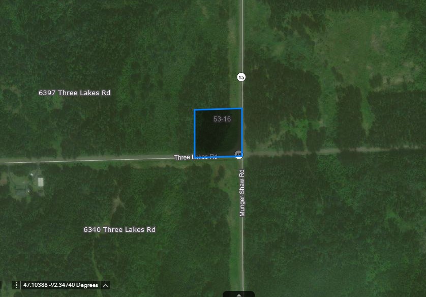 Coordinates: Nw Gps: 47.10382 , -92.34507 NE Gps: 47.10384 , -92.34407 (Rd) SW Gps: 47.10314 , -92.34508 (Rd) SE Gps: 47.10316 , -92.34408 (Rd)