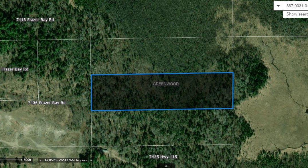 Coordinates: NW GPS 47.859019 , -92.476675 NE GPS 47.859077 , -92.471364 SW GPS 47.858127 , -92.476664 SE GPS 47.858184 , -92.471364